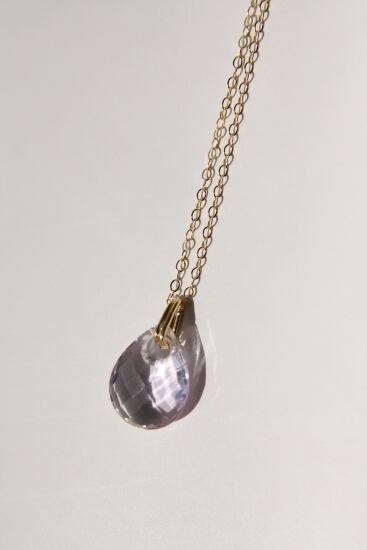1.6cm以上の大きさの雫型のラベンダーアメジストをペンダントトップにしてみました。