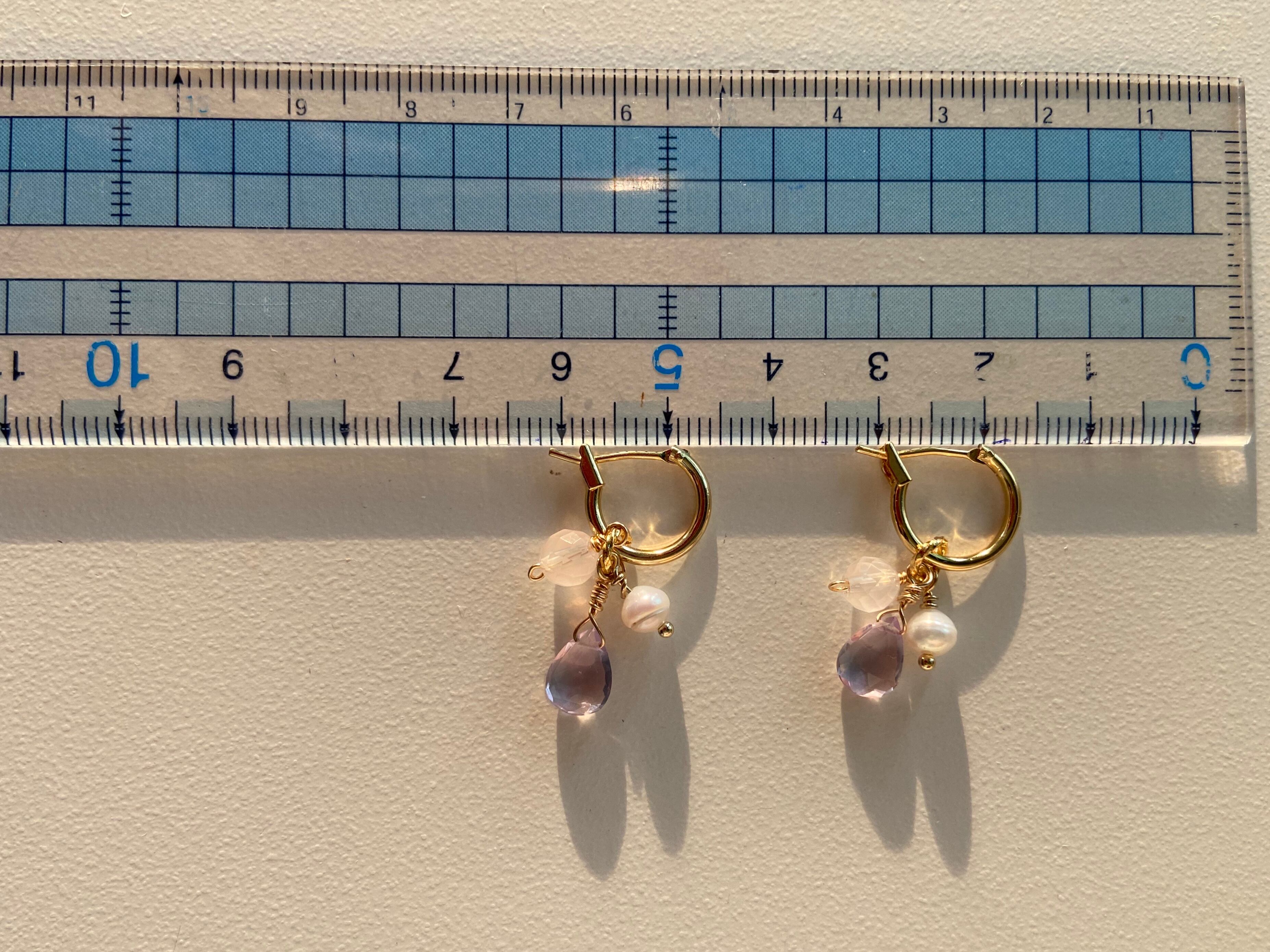 【一点のみ】ライトアメジストとローズクォーツのフープピアス